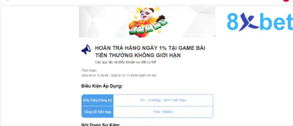 8xbet thường tặng thưởng cho người chơi Mậu Binh. Hãy theo dõi khuyến mãi để tối ưu lợi nhuận.